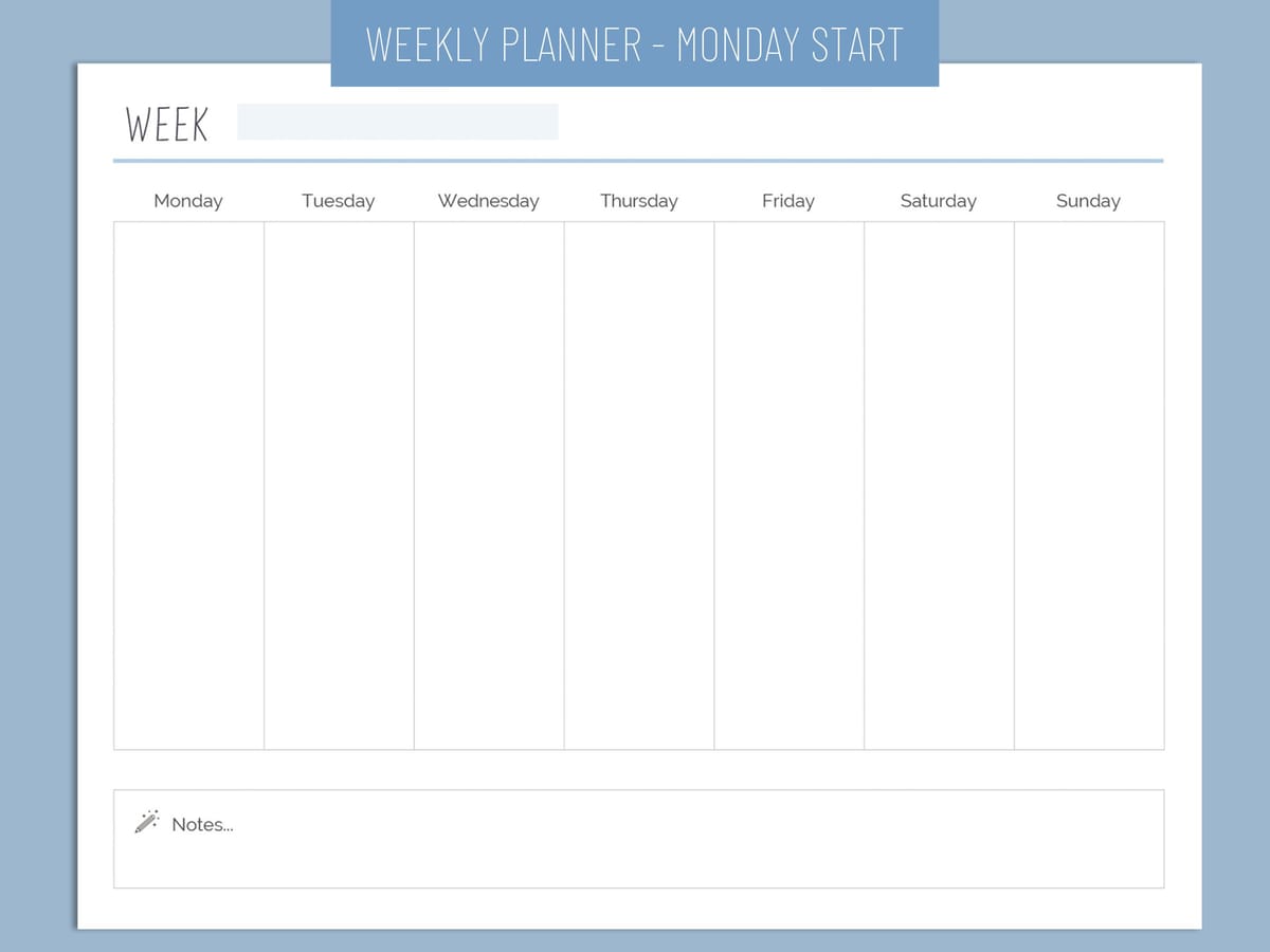 FREE printable Monday to Friday 5 day planner with space for notes.