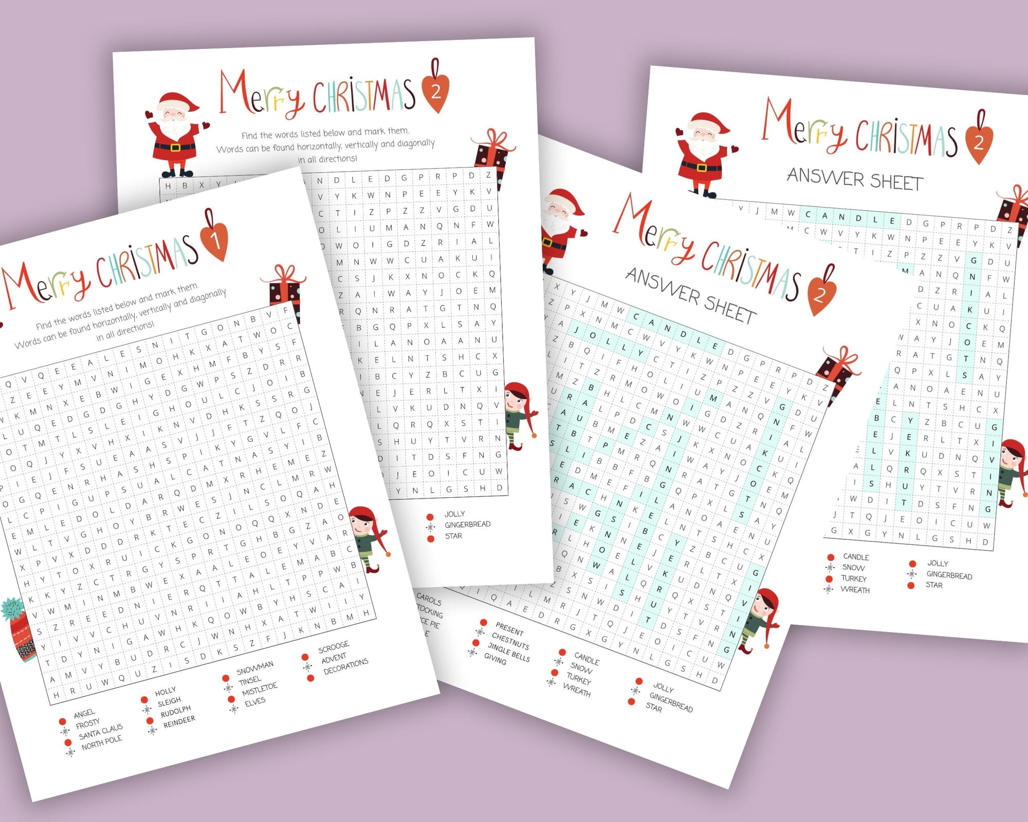 🎄 Two printable word searches, each with 15 words to find! Words can be found horizontally, vertically and diagonally. A useful activity for long car journeys, as well as at kids parties, for games or party bag fillers. 🎄
