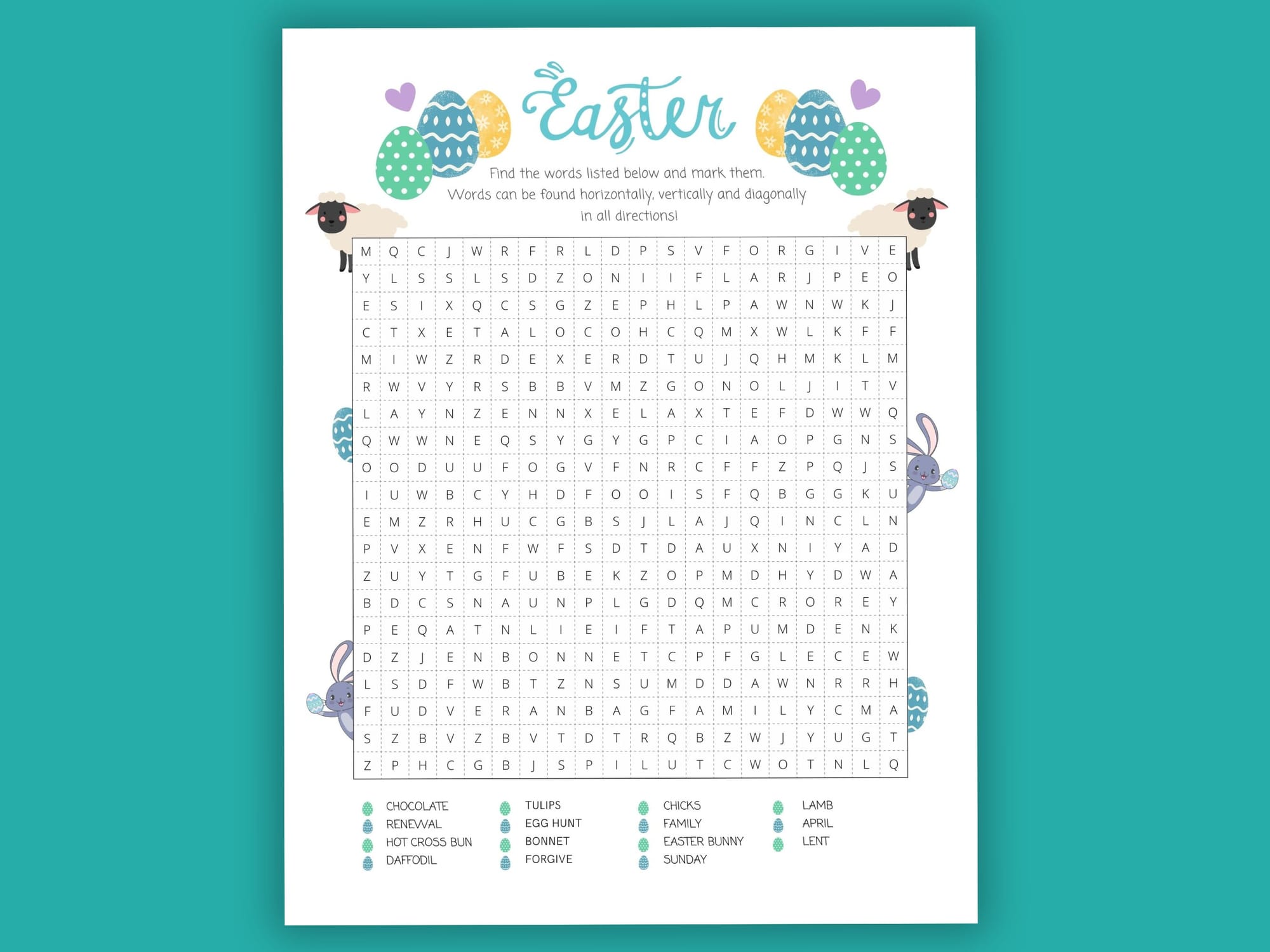 🐥 An Easter themed printable word search with 15 words to find! Words can be found horizontally, vertically and diagonally. A useful activity for long car journeys, as well as at kids parties, for games or party bag fillers. 🐥