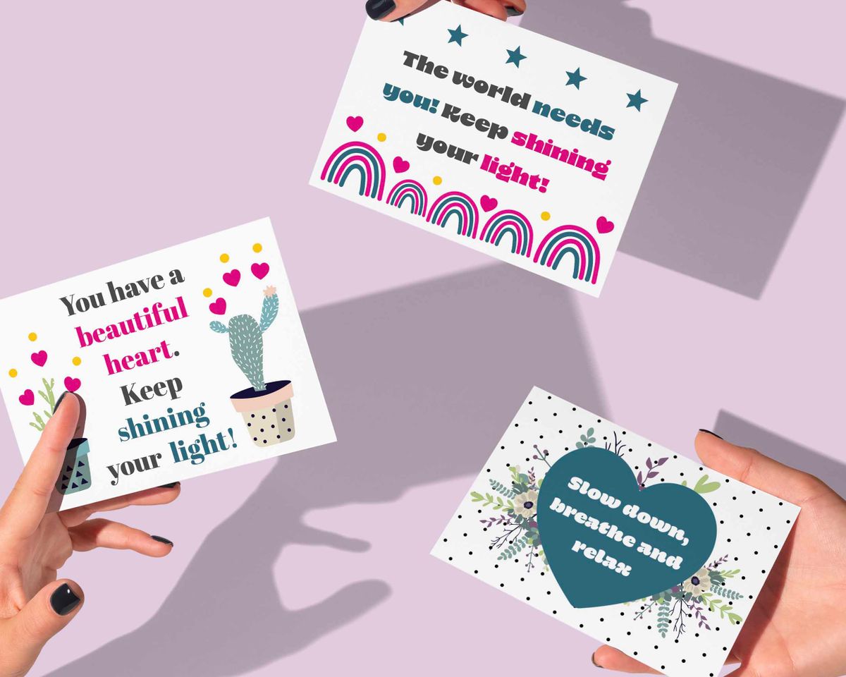 Each card ends with the following prompt, encouraging the recipient to get involved, spread the love and keep the kindness flowing and growing: