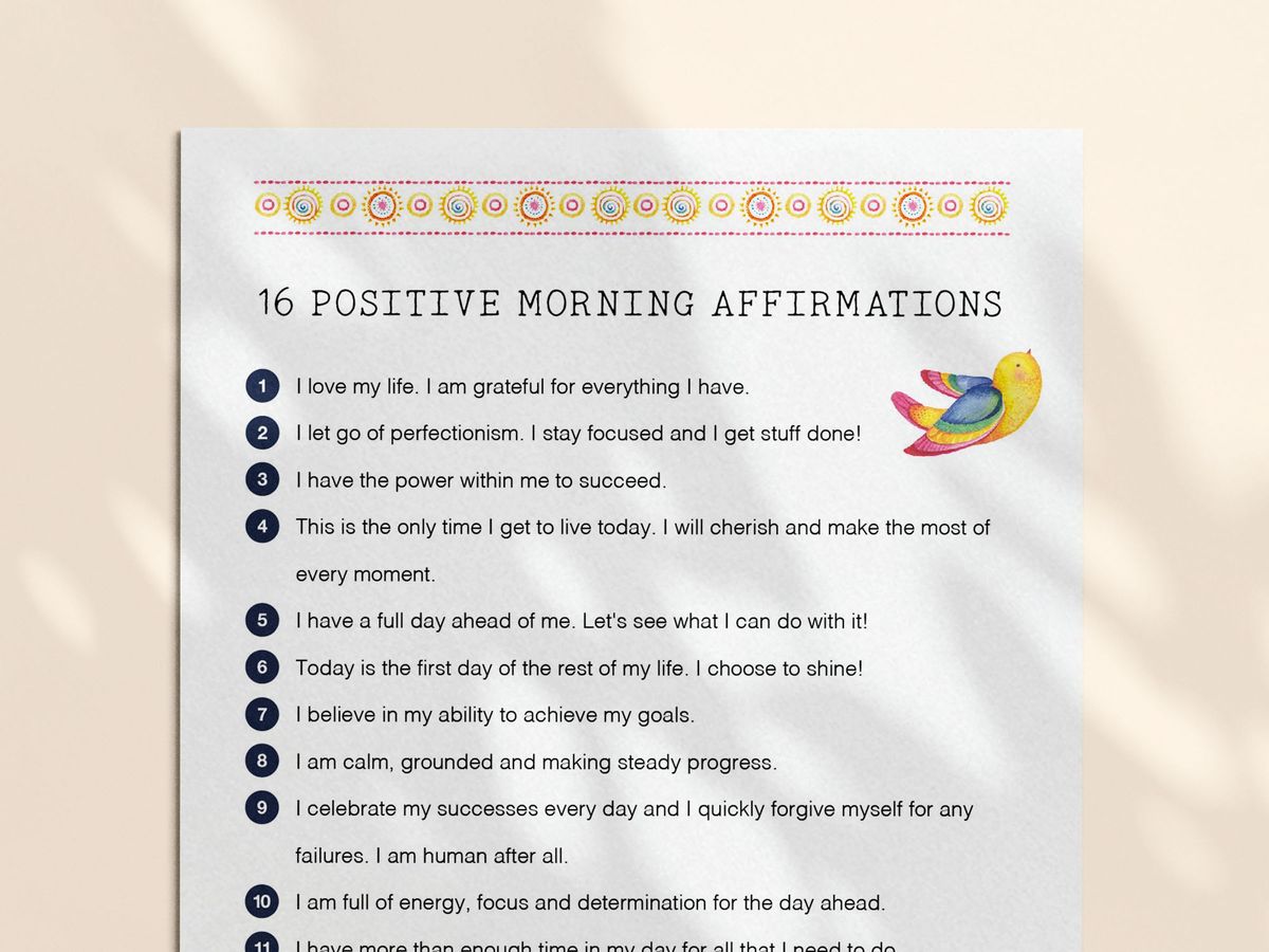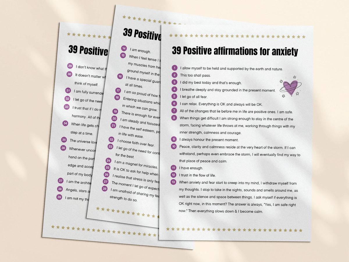 This list of 80 positive affirmations is provided in PDF format and is perfect for printing at home on A4 or US Letter paper.