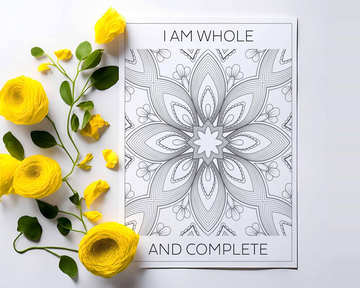 flowery mandala pattern and the positive affirmation, "I forgive myself for my mistakes." ⭐ ⭐ ⭐