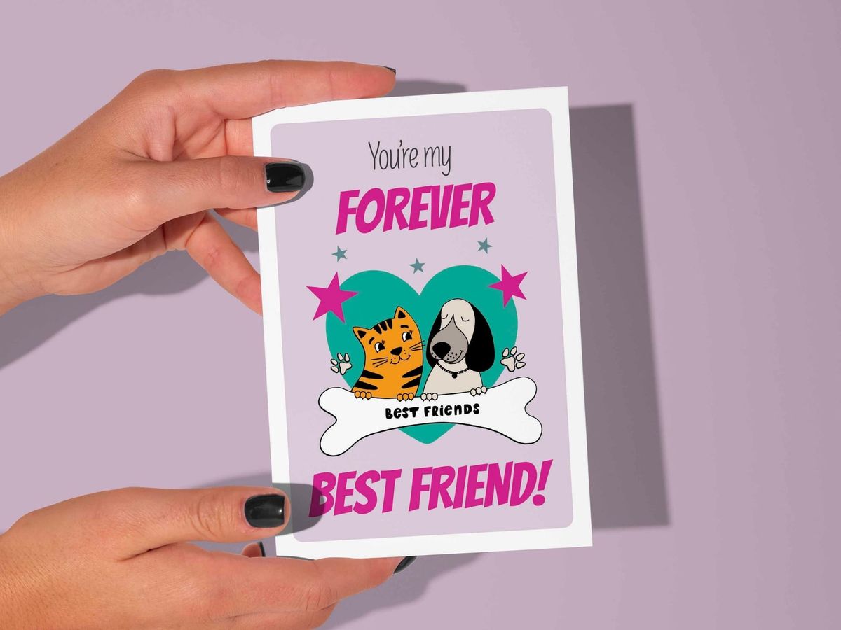 This printable friendship greeting card is provided in PDF format and is perfect for printing at home on A4 or US Letter paper. The card size is 5" x 7" inches.