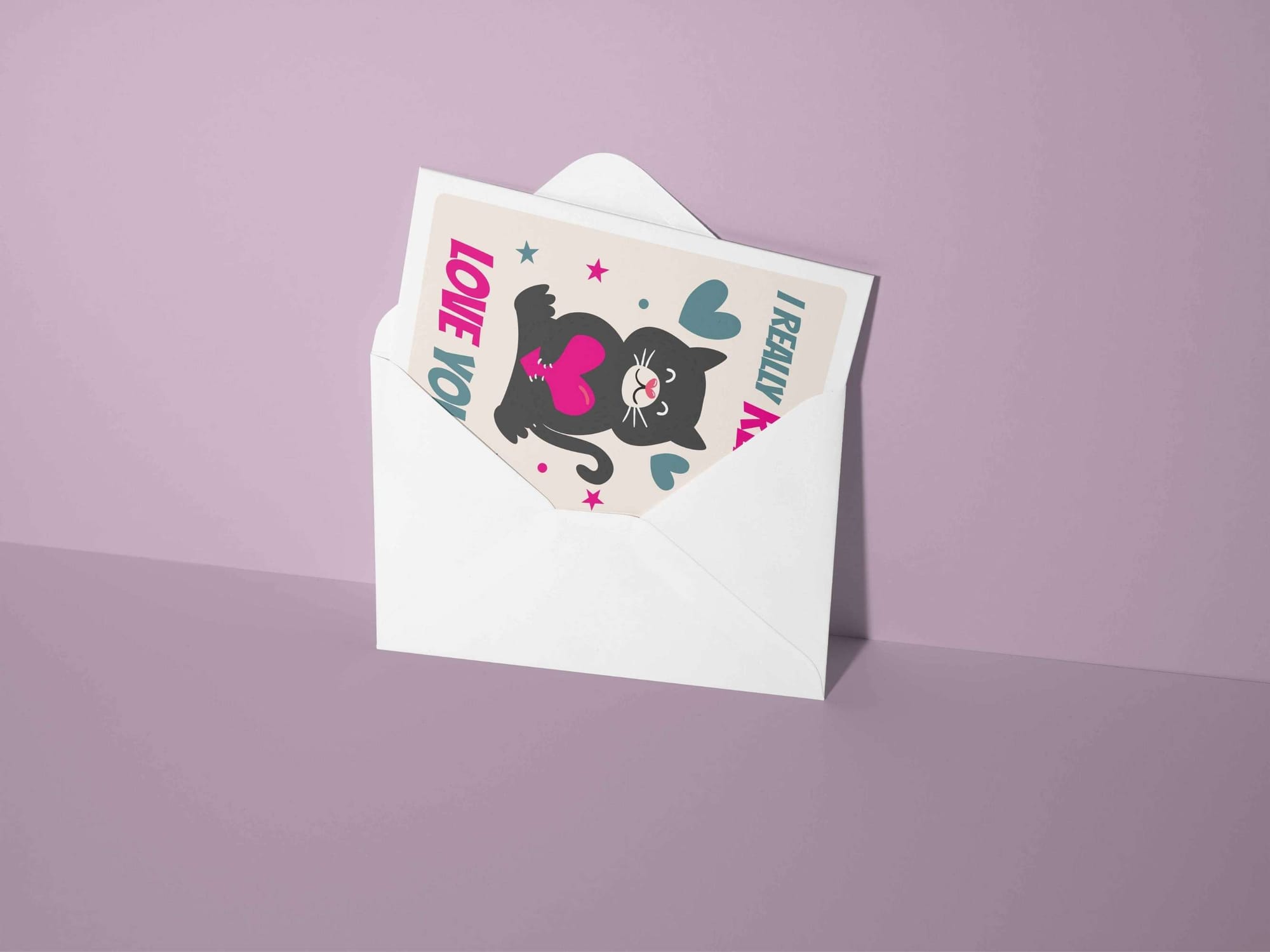 This fun greetings card has a picture of a sweet cat holding a big heart. The perfect card for kids, or adults with a soft heart. Gift this card to friends, family, romantic partners and loved ones.